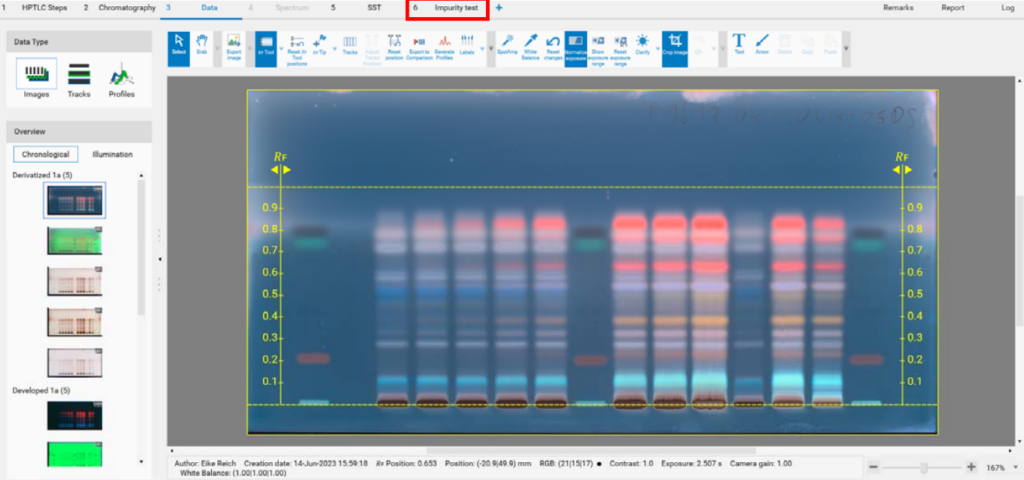 Avec ces fonctionnalités – spectres UV, quantification, impuretés – visionCATS fait de l’HPTLC une technique complète, tout en étant conforme réglementairement. L’utilisateur est guidé pas à pas dans le logiciel pour une utilisation triviale même lorsque l’opérateur n’effectue pas l’analyse dans son quotidien.