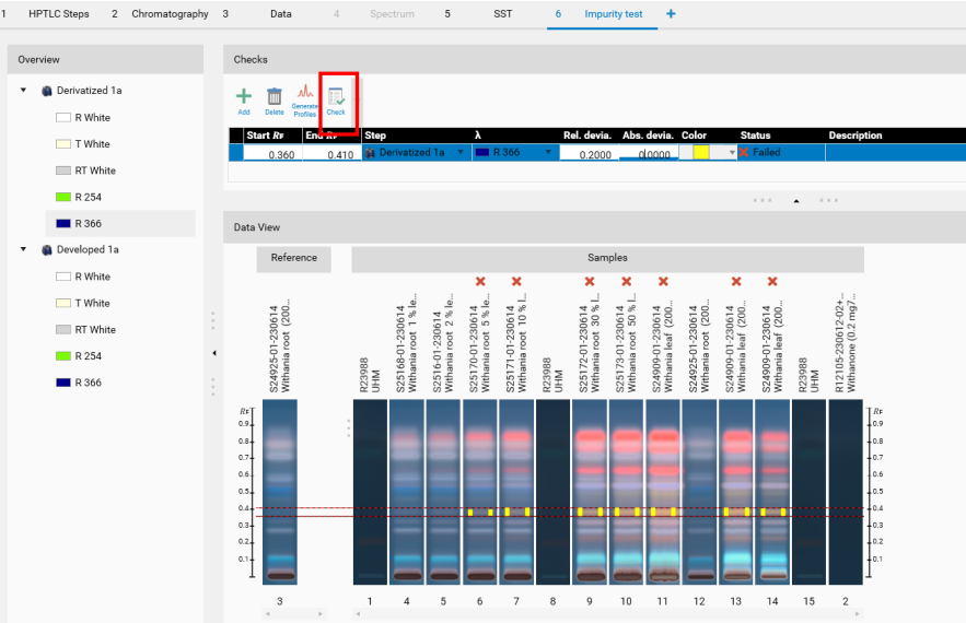 Prérequis : acquisition au TLC Scanner 4 (densitométrie) ou au TLC Visualizer 3 (évaluation par image).